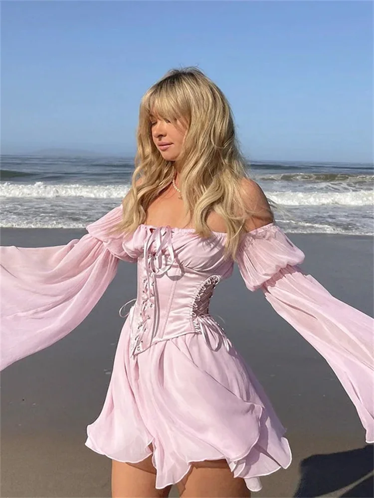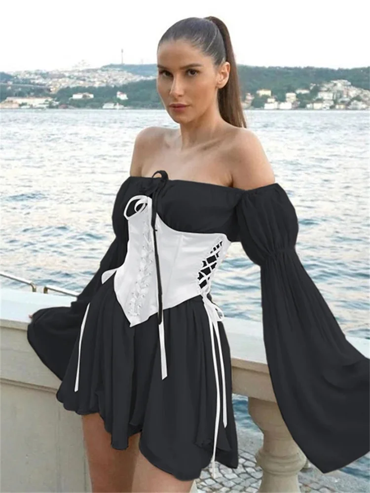 Women Vintage Dress Off Shoulder